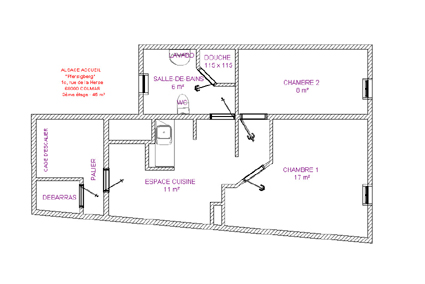 1 séjour-chambre 1 coin cuisine 1 sdb-wc (douche)